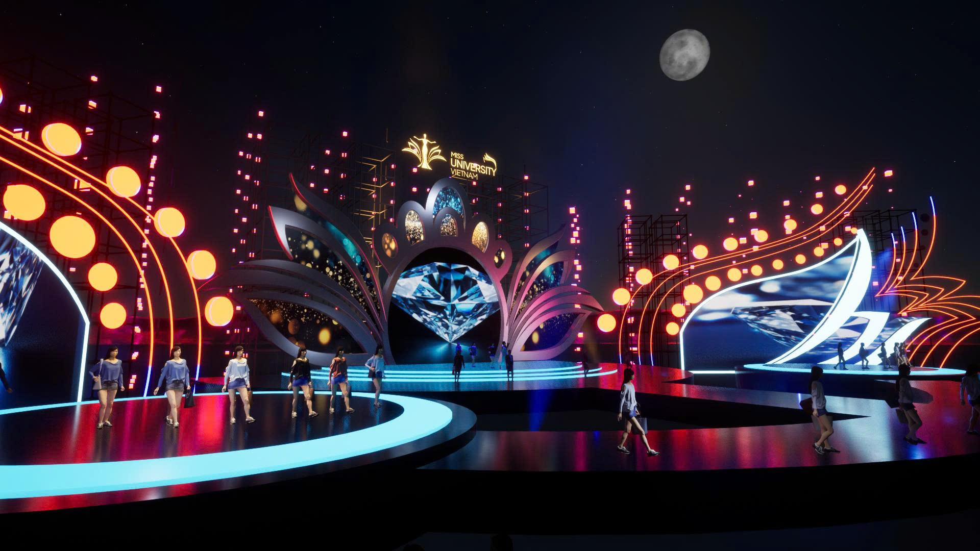 Về sân khấu đêm chung kết, ban tổ chức hé lộ sân khấu được thiết kế đa tầng không gian, kết hợp nghệ thuật và công nghệ, hứa hẹn mang đến cảm xúc khó quên cho khán giả.